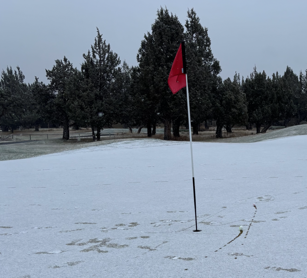 The last couple of holes were a lot of fun with the amount of snow that was falling. But most everyone finished the event with the snow and cold wind.